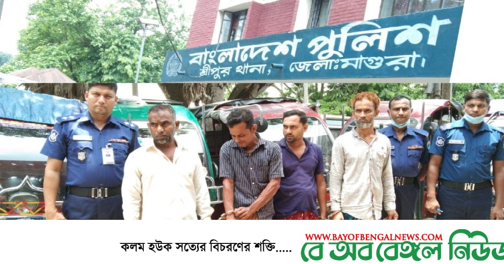 মাগুরার শ্রীপুরে ইজিবাইক চোর সিন্ডিকেটের ৪ সদস্য সহ চোরাইকৃত ৮ টি ইজিবাইক উদ্ধার করা হয়েছে।